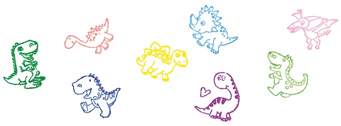 Sisältää 8 leimasinta. Ei mustetta.