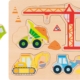 Kohopalapeli, jossa 12 palaa. Laudalla neljä kuvaa, jotka kaikki kolmessa osassa, laudalla siis 4 kolmen palan palapeliä.