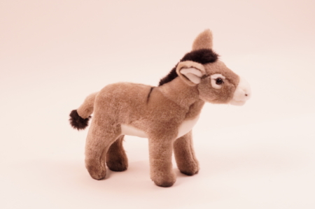 Pehmeä pienempi aasi, jolla niskassa risti.