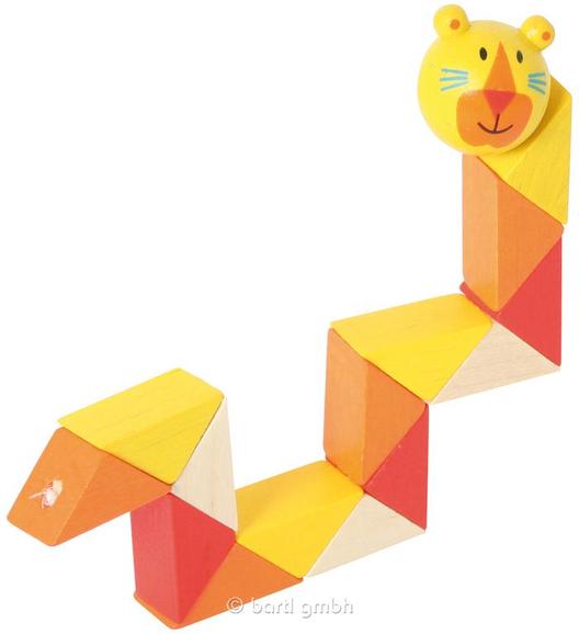Puinen pitkä eläinhahmo, jota voi nivelten kohdalta väännellä.