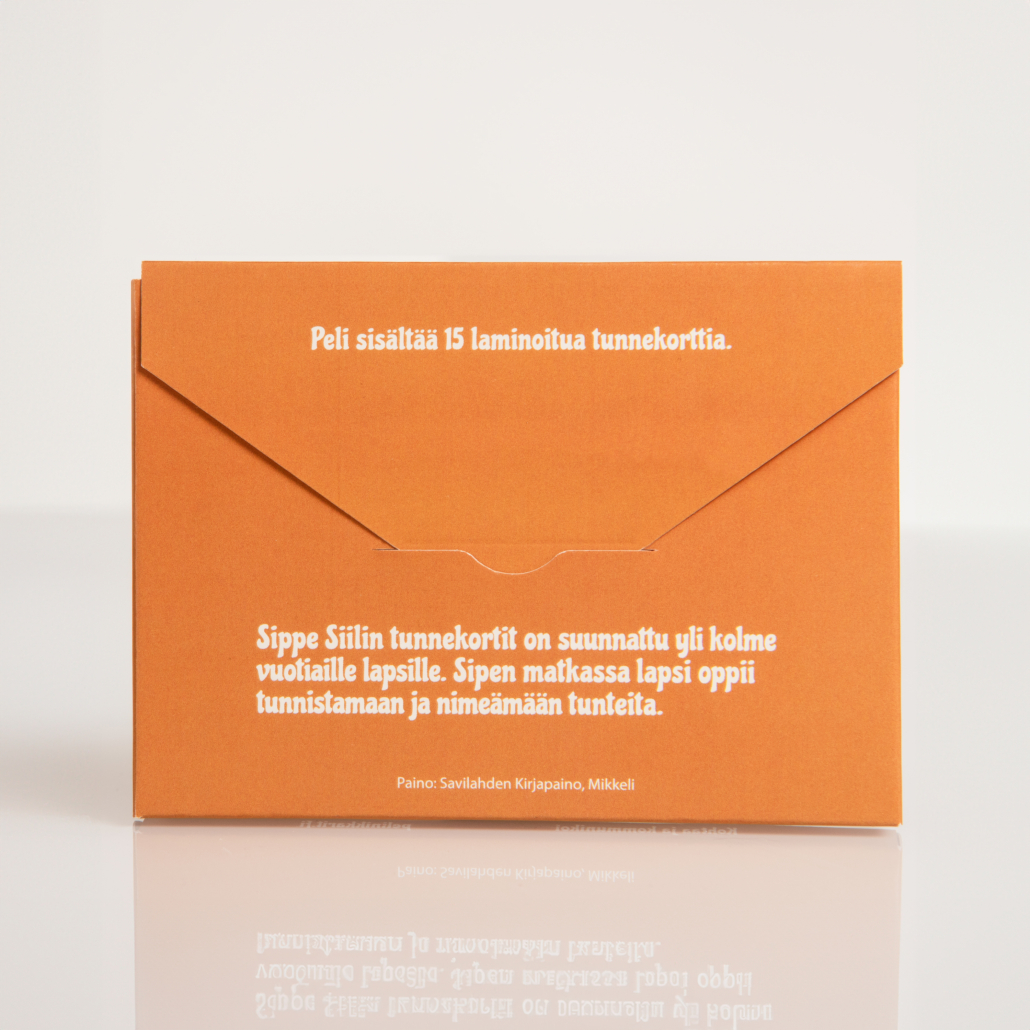 Sippe Siili kortit sisältävät 15 laminoitua, pyyhkimisen kestävää tunnekorttia. Kortit on pakattu pahvikoteloon.