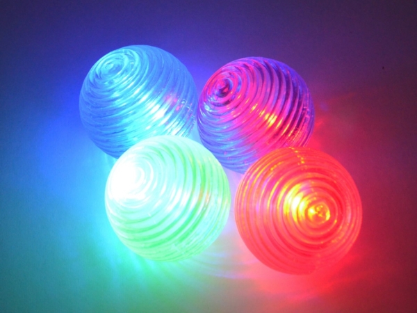 Juomuinen ja jämäkkä pallo, jonka sisällä sinisenä ja punaisena välkkyvä valo.