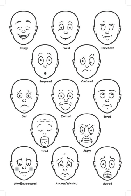 Paketissa myös 3 kasvojen muotoista peiliä ilmeiden tutkimiseen, 3 kasvojen muotoista valkoista tyhjää taulua joihin voi piirtää pyyhittävillä tusseilla ja 3 läpinäkyvää kasvotaulua. Lisäksi A3-juliste jossa näkyy kaikki eri ilmeet.